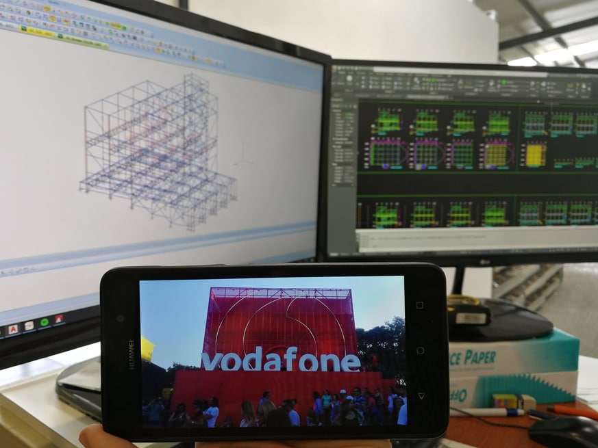 O Palco Music Valley, Vodafone Sofás Jump, Rock Club Vodafone, Rock Street, Super Bock, Digtal Stage, Torre Delay, Torres Slide e Passadiço VIP foram algumas das estruturas que a MetaloIbérica calculou e projetou para este evento.