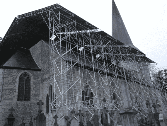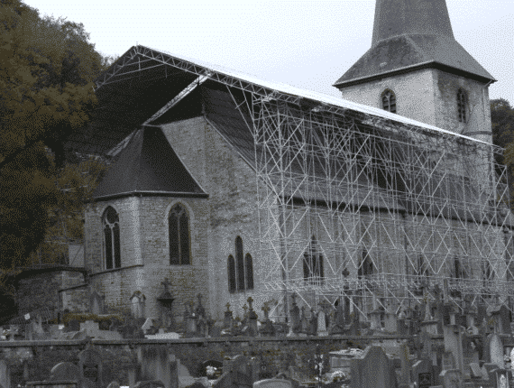 No caso da Église Liégeois a complexa configuração do edifício aliada ao facto de ter um cemitério contíguo dificultou a montagem da estrutura; Os apoios da estrutura ao solo tiveram que ter em conta a existência de sepulcros sem descurar a configuração do edifício.